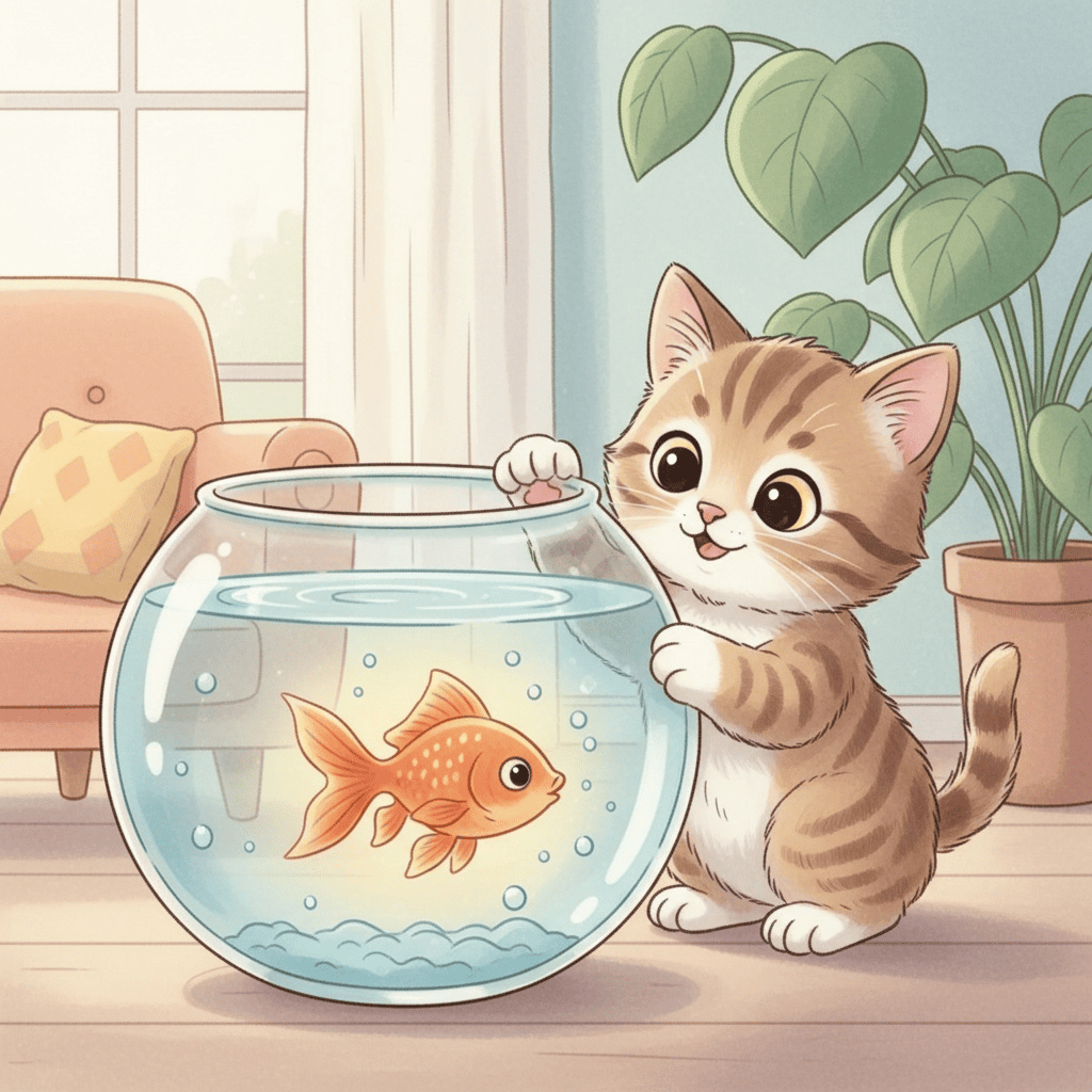 - Kitchen cats eyeing fish bowls