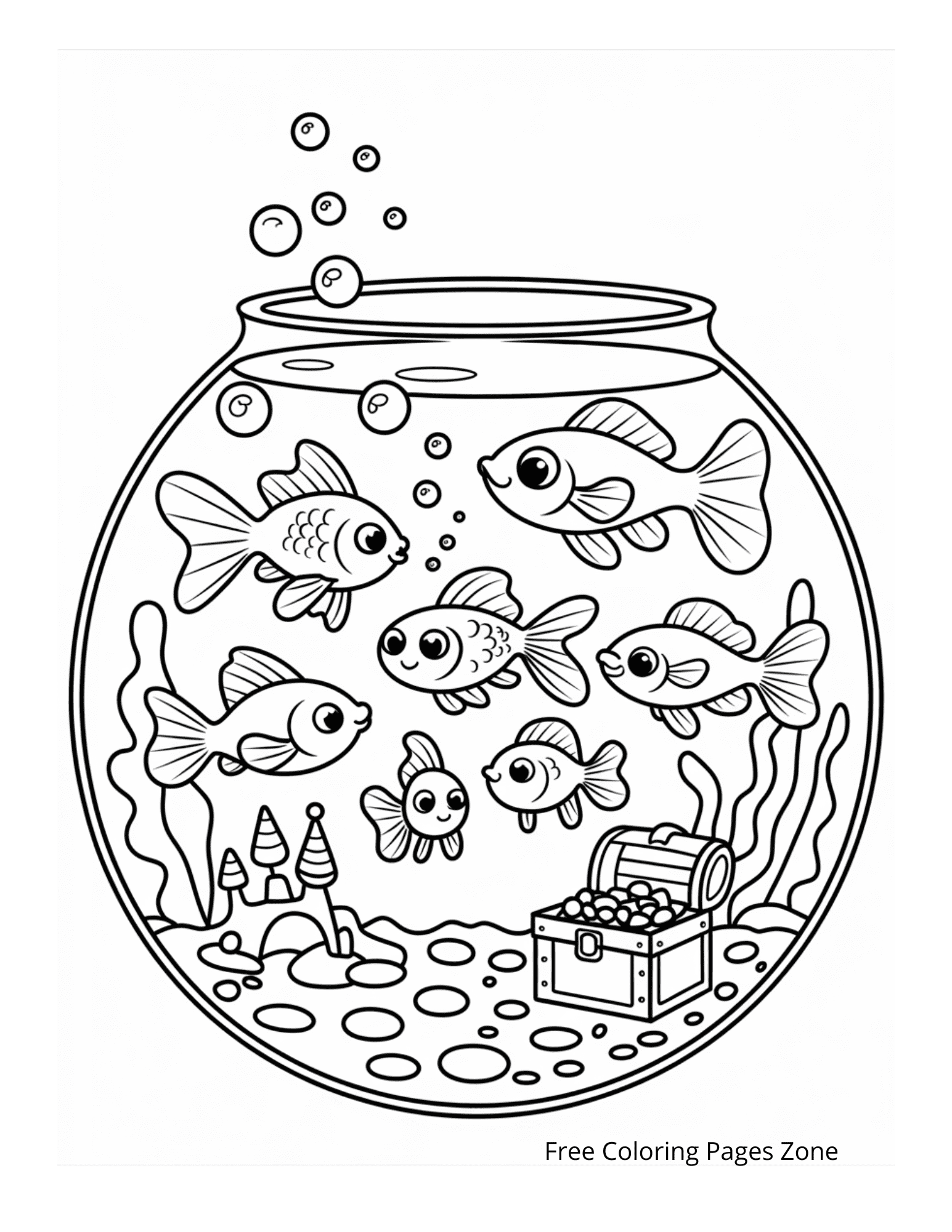 Looking for a free fish tank coloring page in PDF format? Dive into this underwater printable filled with friendly fish, bubbles, plants, and a fun aquarium scene for kids and adults alike.